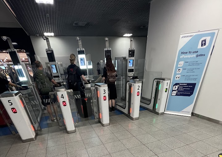 Podróżując pociągiem Eurostar do albo z Londynu na stacji wyjazdu przechodzimy: